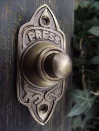 child's shoulder leans over and gives the doorbell a solid ring. Crouching down